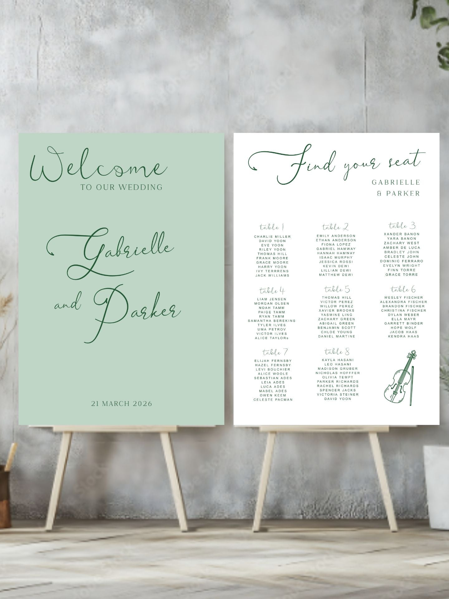 Create a seamless first impression with our welcome sign and seating chart pairs, designed to work beautifully together from arrival to reception. Professionally printed on premium foam board, each set offers a cohesive look that helps guide your guests while enhancing your wedding styling. Customised to match your colour palette and layout, these signs pair perfectly with our artificial floral arrangements for a refined, considered finish. Lightweight and easy to display on easels or stands, our welcome sign and seating chart pairs bring both function and style to your celebration.